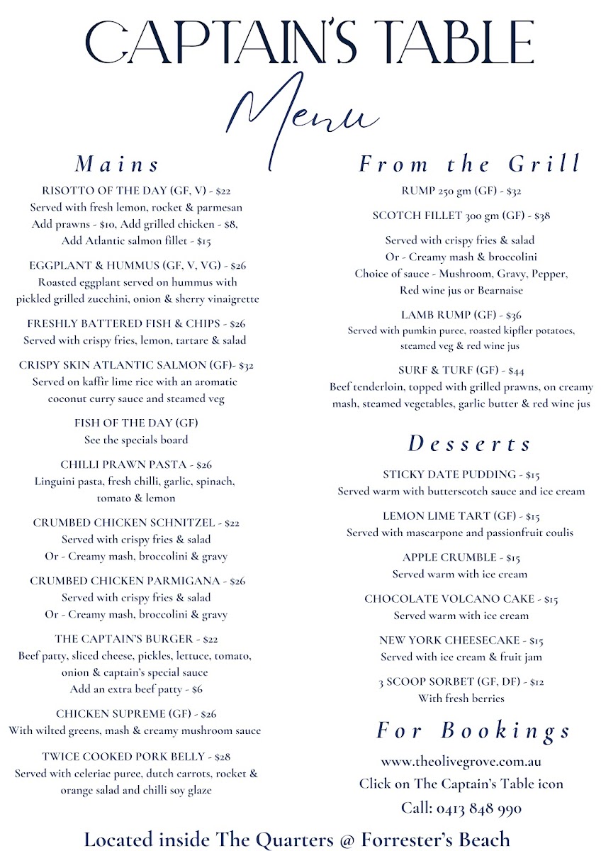 Welcome to The Captain's Table, nestled along the stunning Central Coast of Australia at 960 Central Coast Hwy, Forresters Beach. This inviting venue prioritizes customer satisfaction with a team that consistently delivers excellent service, as noted by many delighted patrons.